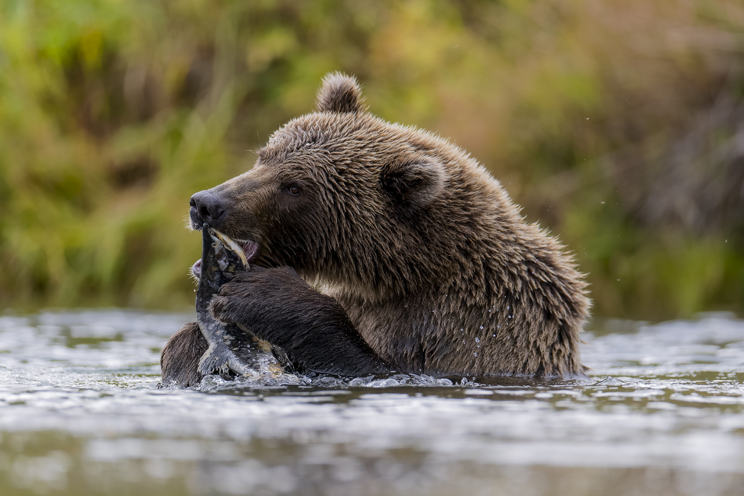 These two trips were at the end of the season, where the weather can be a bit unpredictable, and we did get some rain, but overall the weather was fantastic. With the bears we got a nice mix of bears fishing the last salmon runs of the season as well as males contesting a strength of test with each other.