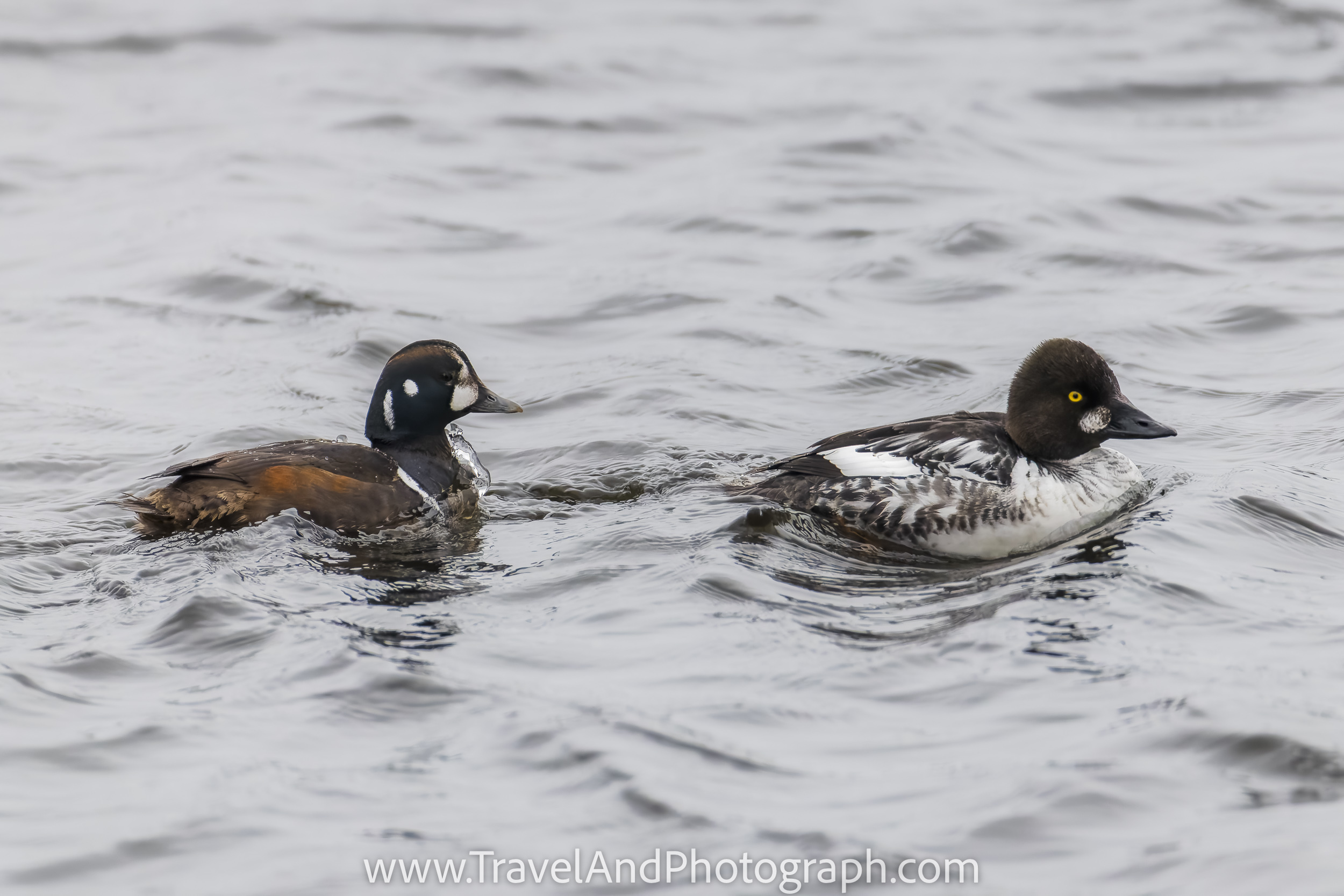 Goldeneye (on the right) with a Harlequin duck (on the left):