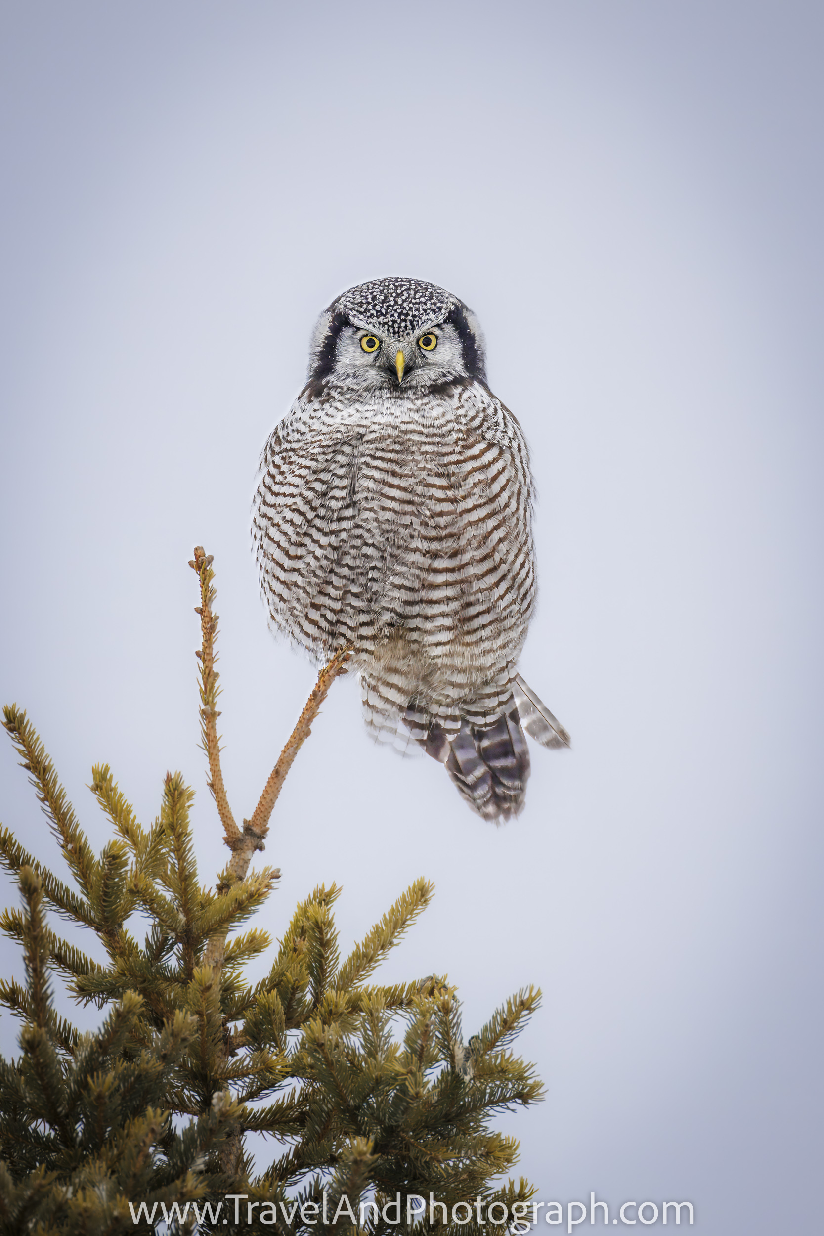 We then ventured to the Sax Zim Bog area, which traditionally has been excellent for Great grey owls. This year was different, the great grey owls were non-existent with only a few random sightings here and there. The theory from the bird biologist that the food supply was so good in the forest, that there was no need for the great grey owls to come out to the open fields to hunt. I expect 2027 to be amazing for the great grey. Despite this, we had amazing looks and photos of the Northern Hawk-Owl: