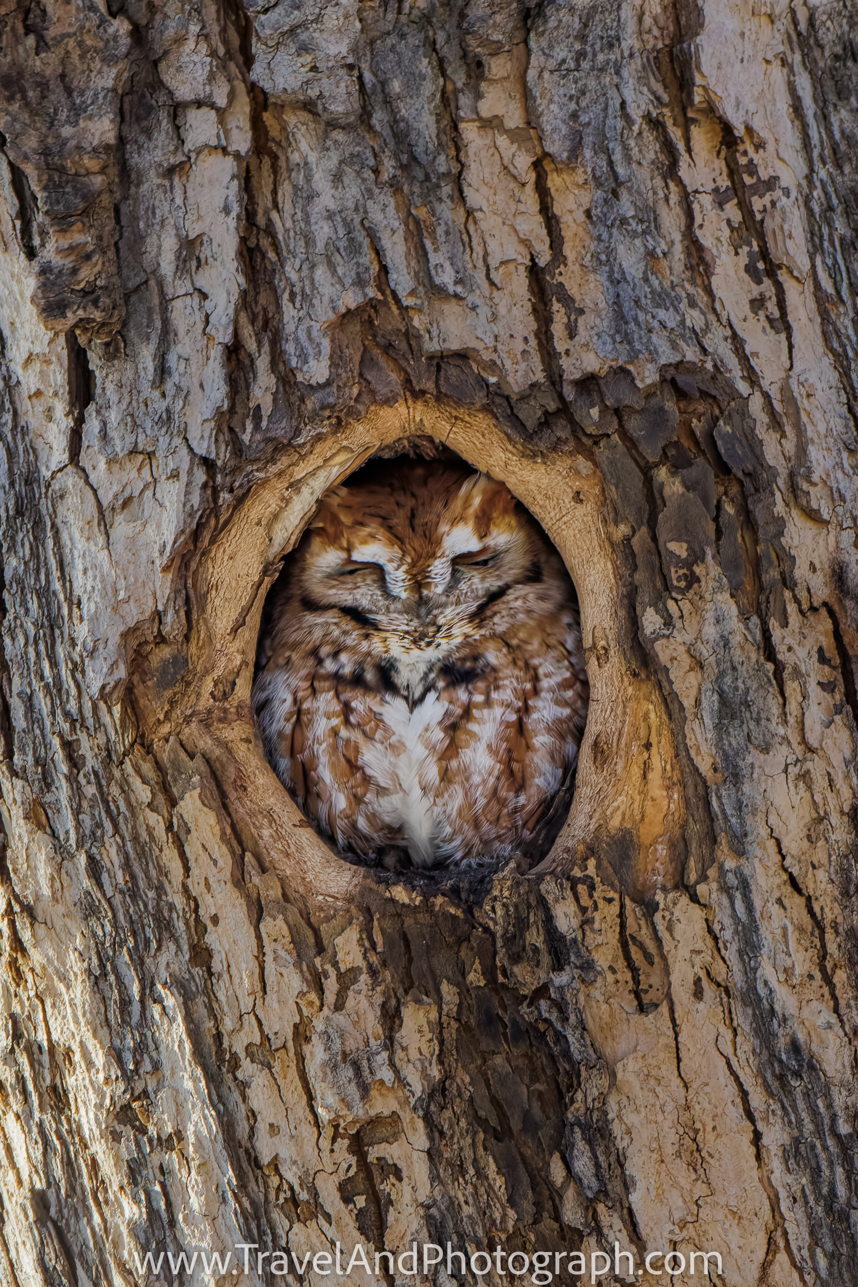 We then explored the city based on other observations for screech owls. It took me some time, but I was able to located not one, but two eastern screech owls, a red and gray morph: