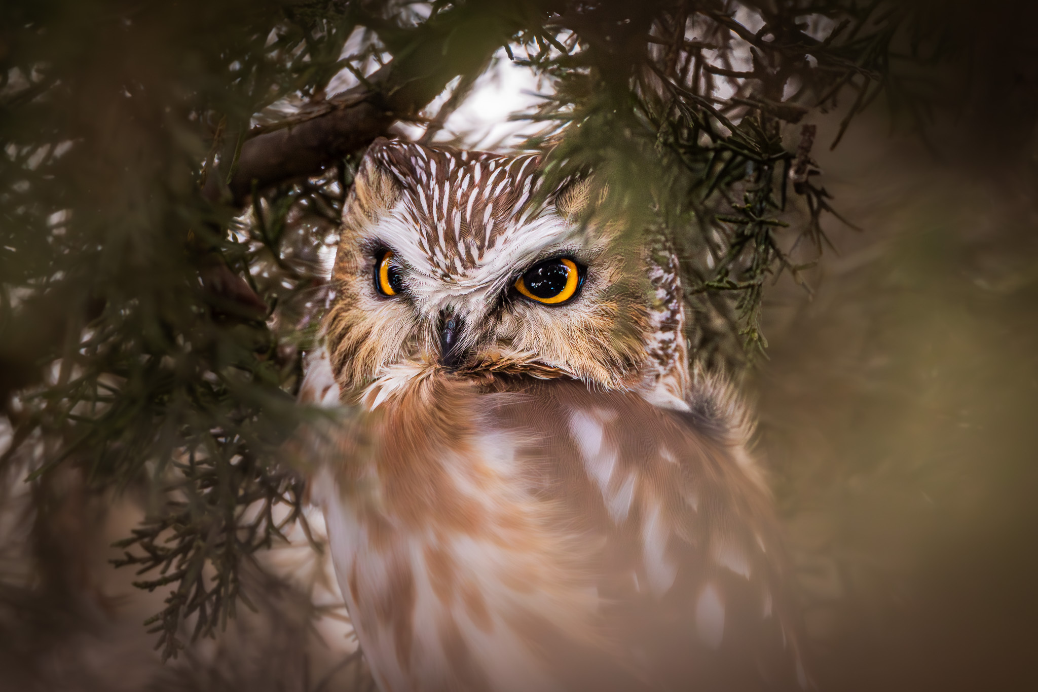 We also searched high and low for the Northern Saw-Whet owl. We struck out multiple times, but with the help of a local, we struck gold and were treated to a fantastic glance at this small species of owl: